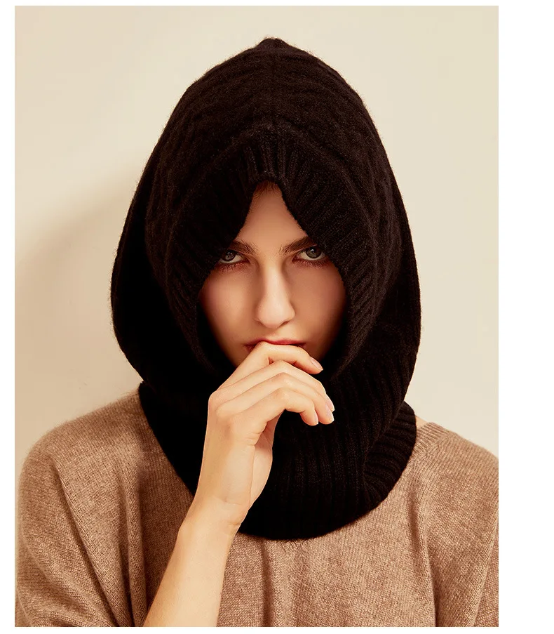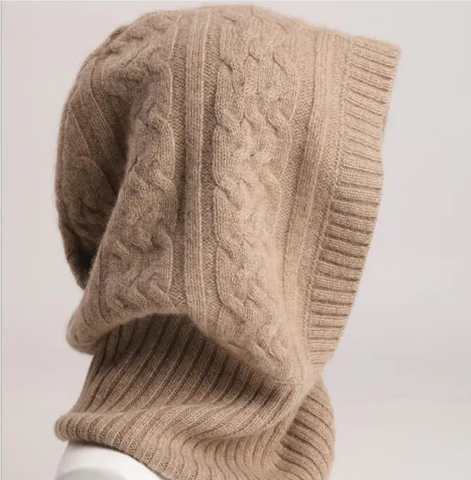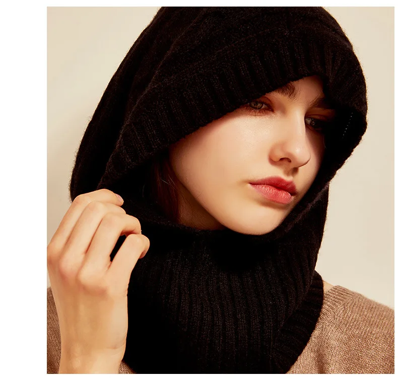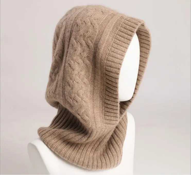 100 Cashmere Men Women Warm Cashmere Adult Ring Scarf with Hat Fashion Couple Knitting Twisted Shawl ,SN7